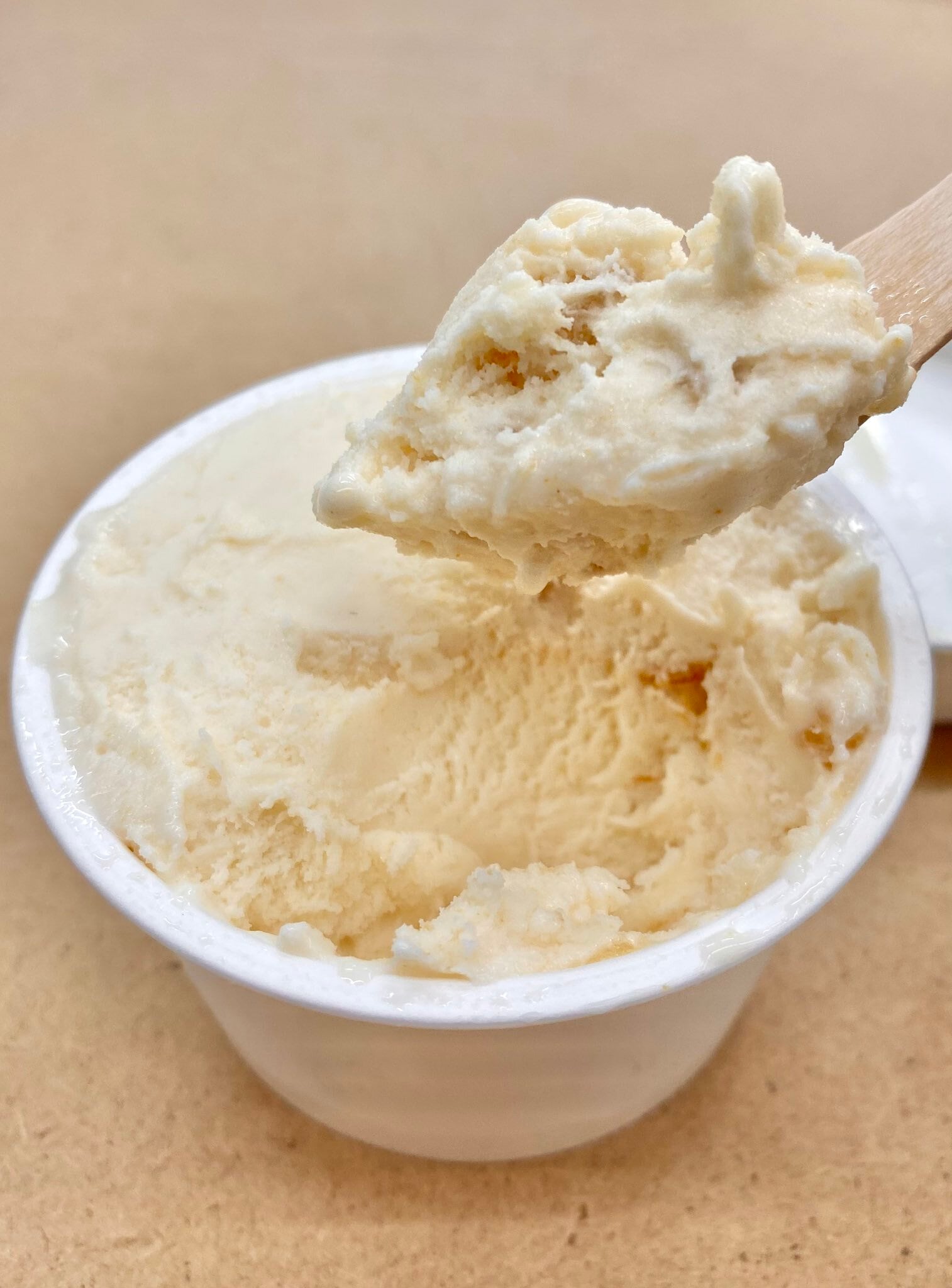 2013年にヨロン島の地域食材を活かして何か特産品となれるようなデザートが作れないか?との思いから開発挑戦が始まり、やはり暑い暑いこの与論島で島人にも旅人にも永く愛され喜ばれるのはきっとアイスクリームだ‼︎と確信。誕生したのがこのヨロンアイスクリームです。歴史は浅いですが毎年同じ旅人が食べにいらして頂けるなどヨロン島ではメジャーな存在となってきました。