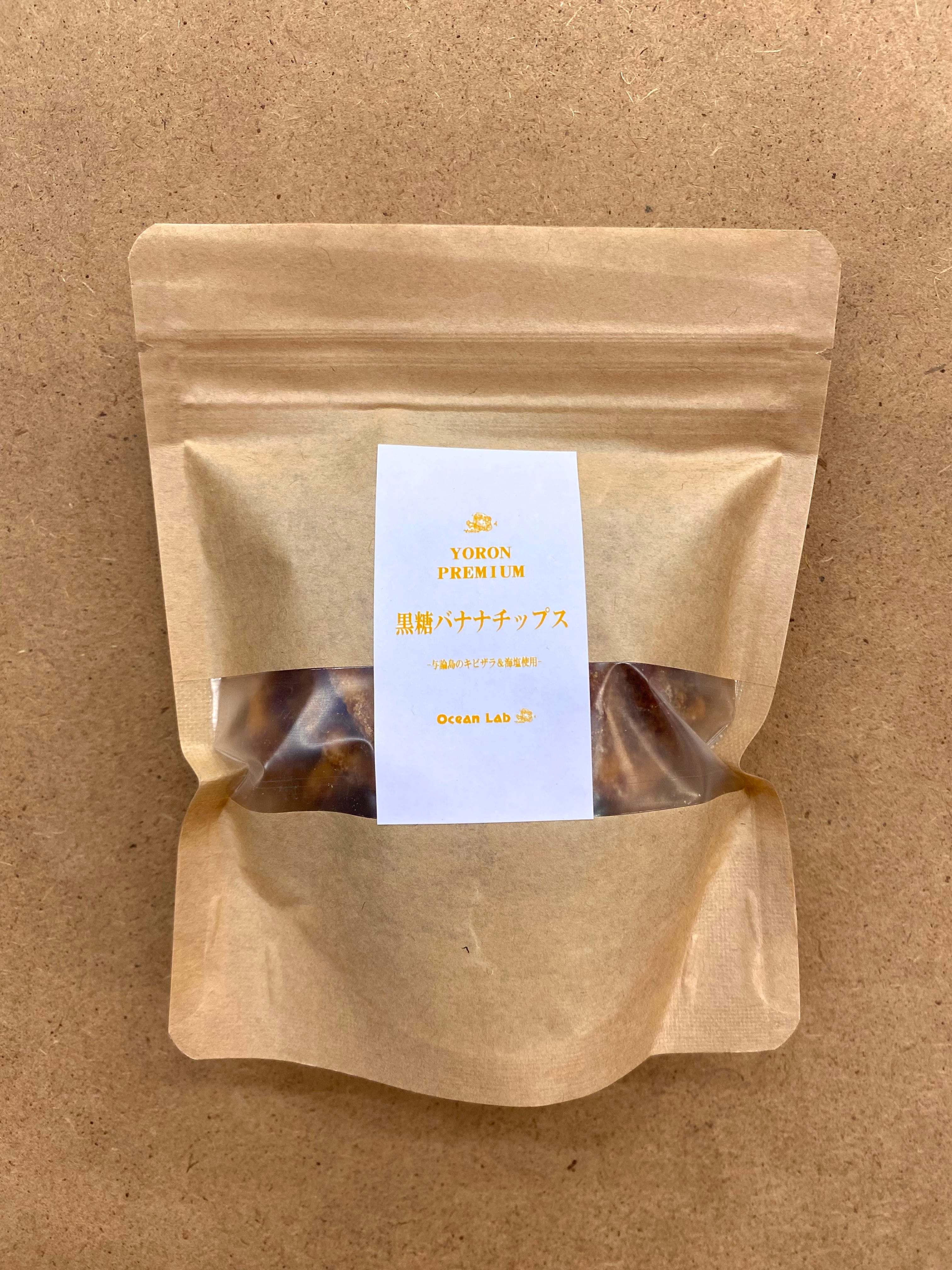 ココナッツオイルで香ばしく揚げたバナナチップスに黒糖をコーティングし、与論島のキビザラメと海塩で甘じょっぱく味付けしたプレミアムな味わいのバナナチップス。