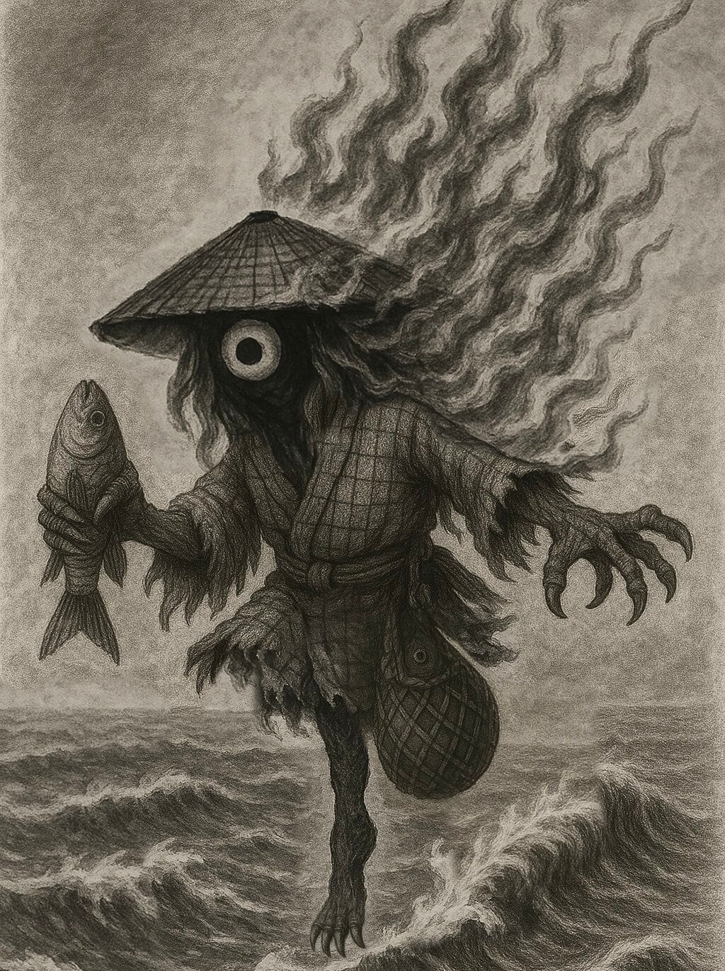 もしも与論島の夜の海で水面を飛び跳ねる火の玉を見かけたらそれは妖怪「イシャトゥ」かもしれない。与論島の漁師たちの間で古くから語り継がれてきたこの妖怪は、別名ハタパギ(片足)とも呼ばれています。釣れた魚の目玉を好んで抜き取るとされ、夜の海にひっそりと現れるのです。