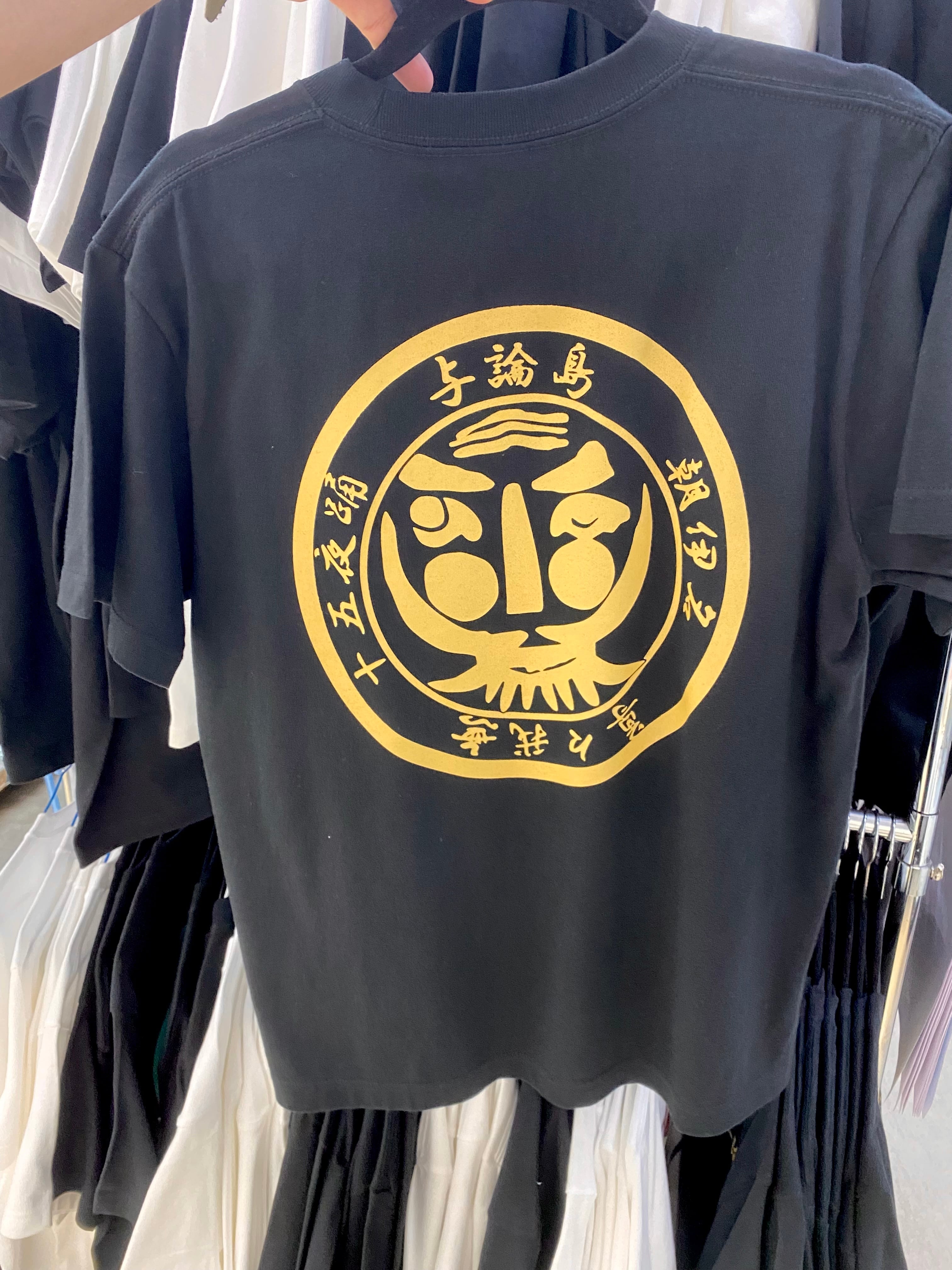 与論島で五穀豊穣を願う国指定の重要無形文化財「与論島十五夜踊り」で出てくる酔っ払い、アサイナーのTシャツです。どこか不気味で怖さもありますが最近では与論を象徴するキャラクターとして愛されています。