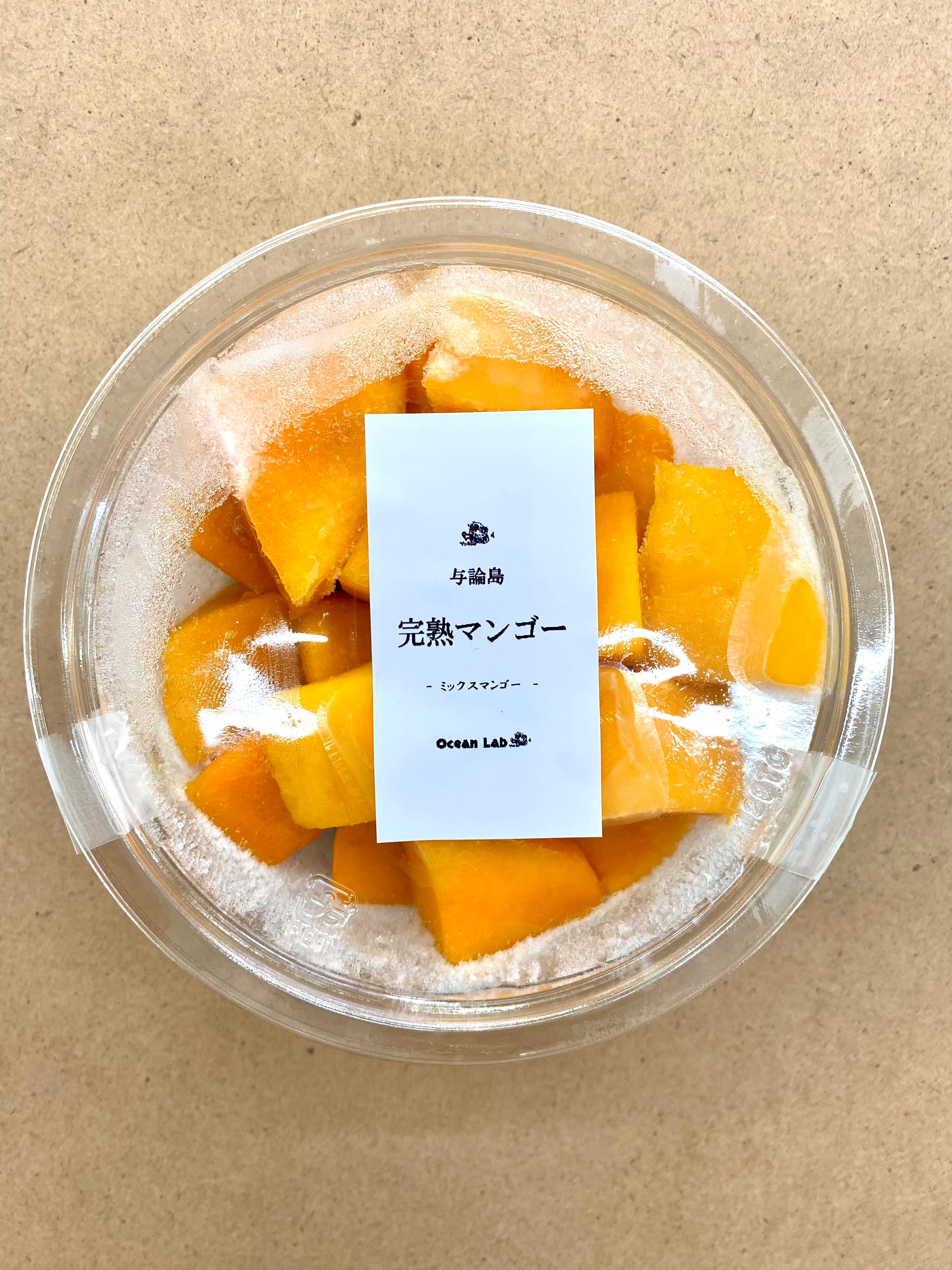 与論島の太陽、大地の恵みをうけて育った絶品マンゴーを一口大にカットして冷凍しました。