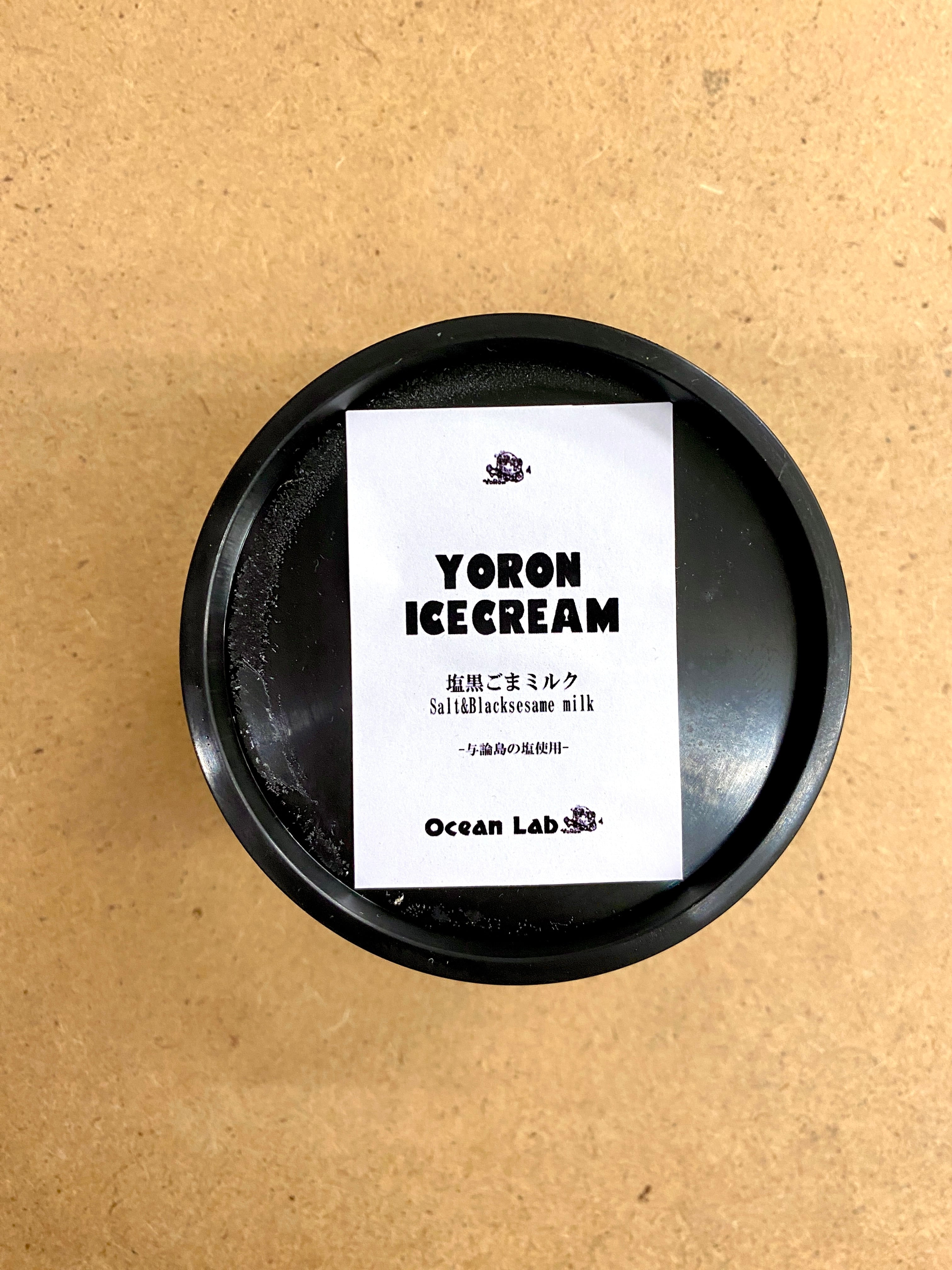与論島の塩を混ぜたミルクアイスにすり潰した黒ごまを混ぜました。舌に乗せた瞬間に広がる黒ごまの風味とコクはヨロンアイスの中でもトップクラスの濃厚さです。